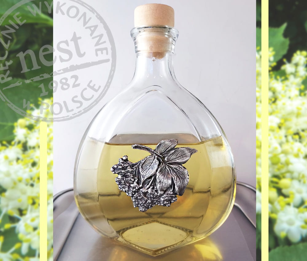 Nalewka z kwiatu czarnego bzu to obok soku bardzo prosty i smaczny sposób na wykorzystanie prozdrowotnych właściwości tej rośliny, która od wieków wykorzystywana jest w celach leczniczych. Nasza karafka do nalewki z czarnego bzu, jest ozdobiona ręcznie tworzoną aplikacją z brązu pokrytego srebrem najwyższej próby. Ten wyjątkowy produkt, polecamy jako prezent dla osób tworzących domowe nalewki i likiery. Sprawdzi się również jako prezent dla seniorów i dziadków.